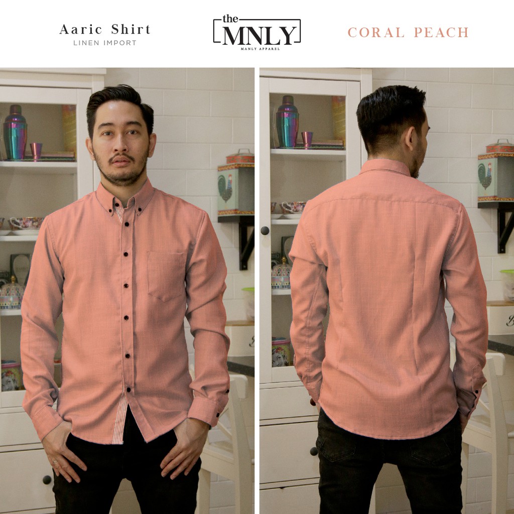 Jual Kemeja Pria Lengan Panjang Warna Peach Tua Linen Import The Mnly Original Indonesia Shopee Indonesia